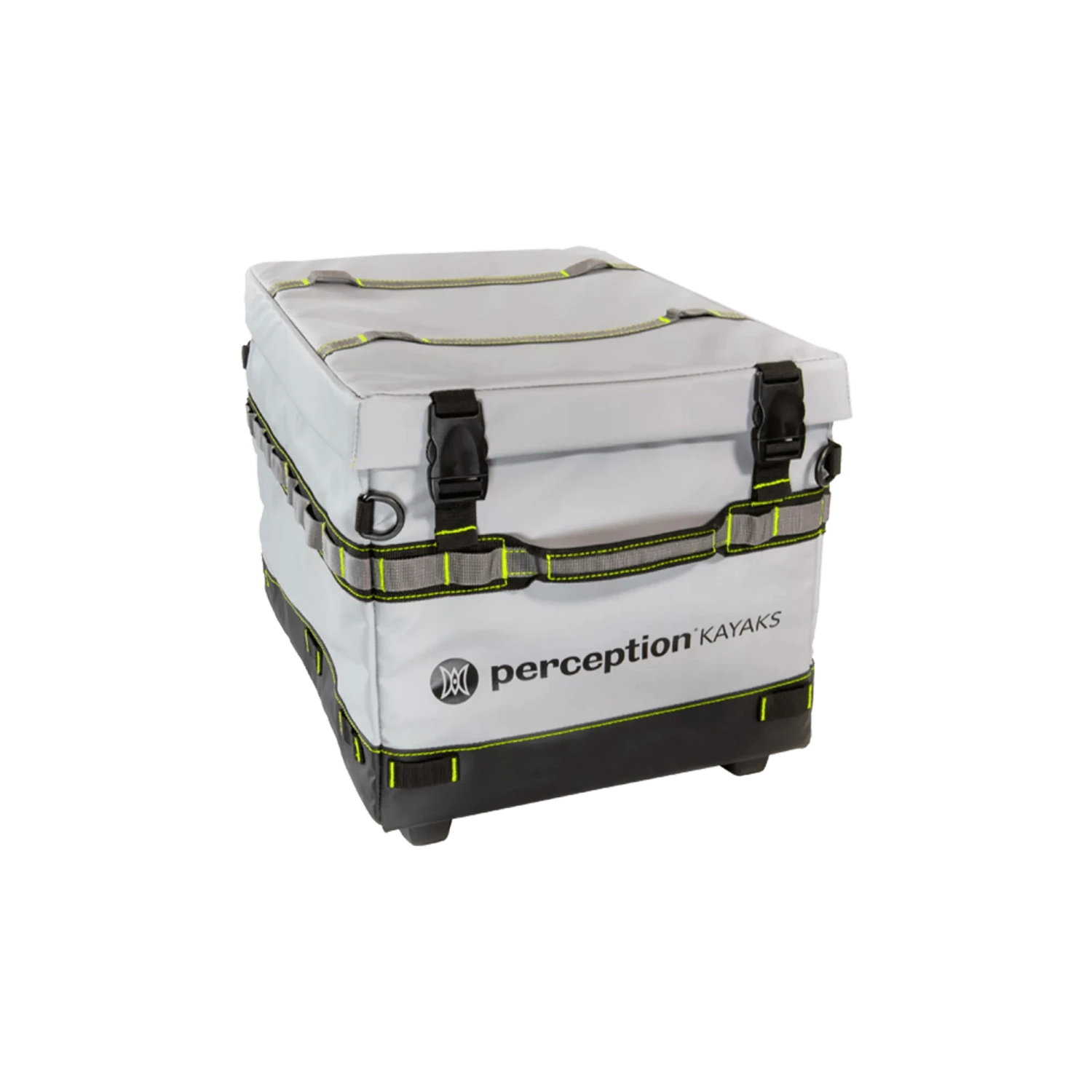 Designed for both fishing and general use, this innovative, versatile, and customizable kayak crate comes with an exclusive clip-in system for Perception Splash rod dolders and Splash pocket organizers (sold separately), making it easy to modify to your needs. The crate features strong webbing loops and D-rings for additional customization and securing options, ensuring maximum stability and convenience. Built to last, the Perception Splash kayak crate is made of ultra-durable slick waterproof materials with a canopy-style lid that sheds splash and rain for a dry interior while preventing fishing hook snags. The crate features a one-hand lid latch that securely locks your gear inside and a removable lid allowing easy access to your equipment. Plastic feet on the bottom of the crate elevate it away from wet or uneven surfaces, while ergonomic grab handles make it easy to carry. With an internal capacity to fit seven (7) 3700 Plano boxes or thirteen (13) 3600 Plano boxes, the Perception Splash kayak crate offers ample space to keep your gear organized. Weighing only 5.25 lb, the exterior dimensions of the crate are 13” W x 17” D x 12.5” H, while the internal dimensions are 12.25” W x 16” D x 11” H. The crate is compatible with most sit-on-top kayaks and is designed to fit in the stern tank well.